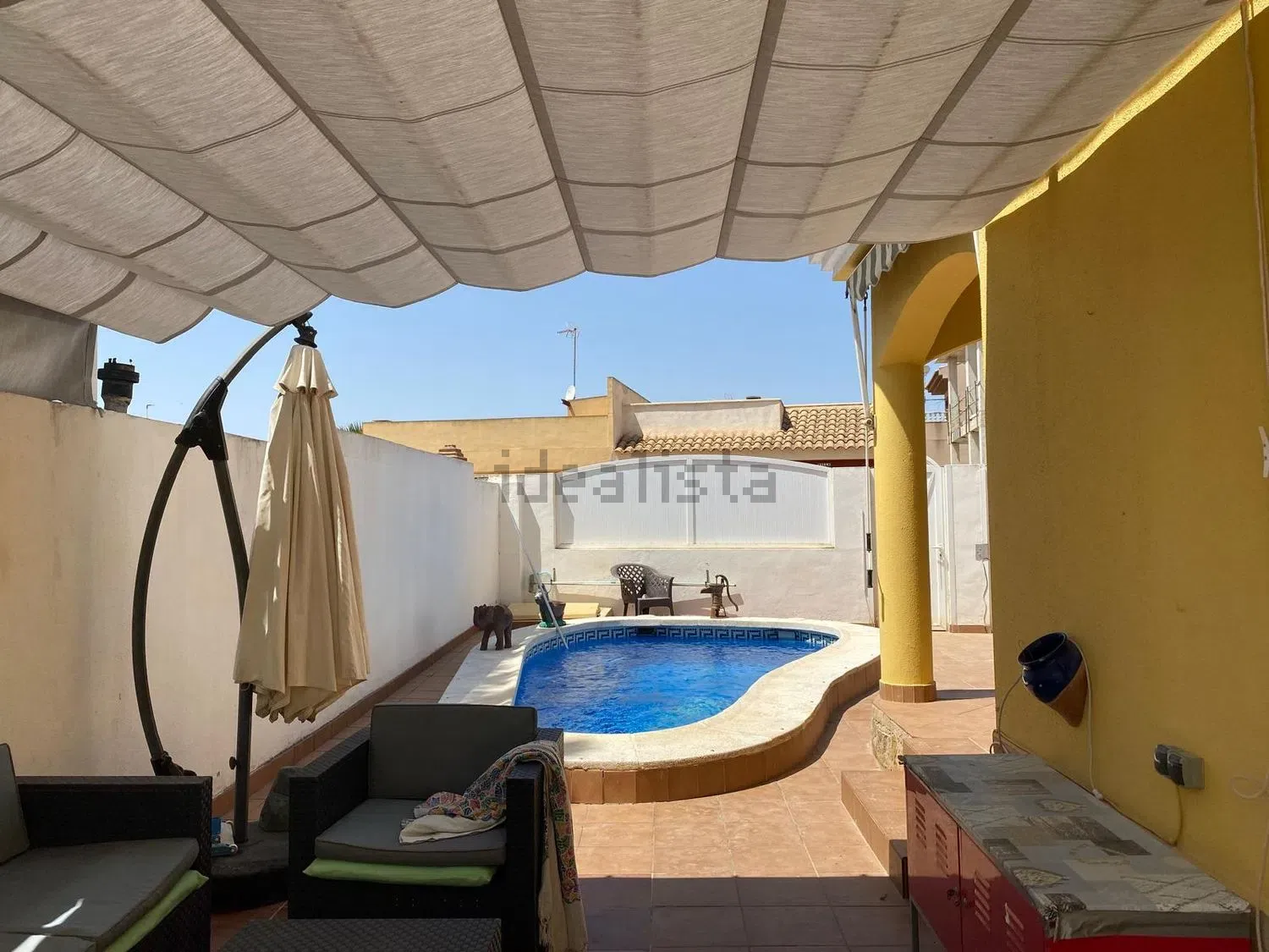 Imagina relajarte en tu propia piscina privada o disfrutar del jardín completamente cerrado, ideal para mantener la privacidad y fácil de cuidar. La ubicación es inmejorable: a solo 20 metros de la parada de autobús y a 5 minutos a pie del club de golf Las Serena. Además, estarás rodeado de servicios como bares, restaurantes, supermercados y bancos, lo que facilita tu día a día. Sin gastos de comunidad y lista para entrar a vivir, esta casa es una oportunidad única que no querrás dejar pasar. ¡Ven a visitarla y hazla tu hogar!